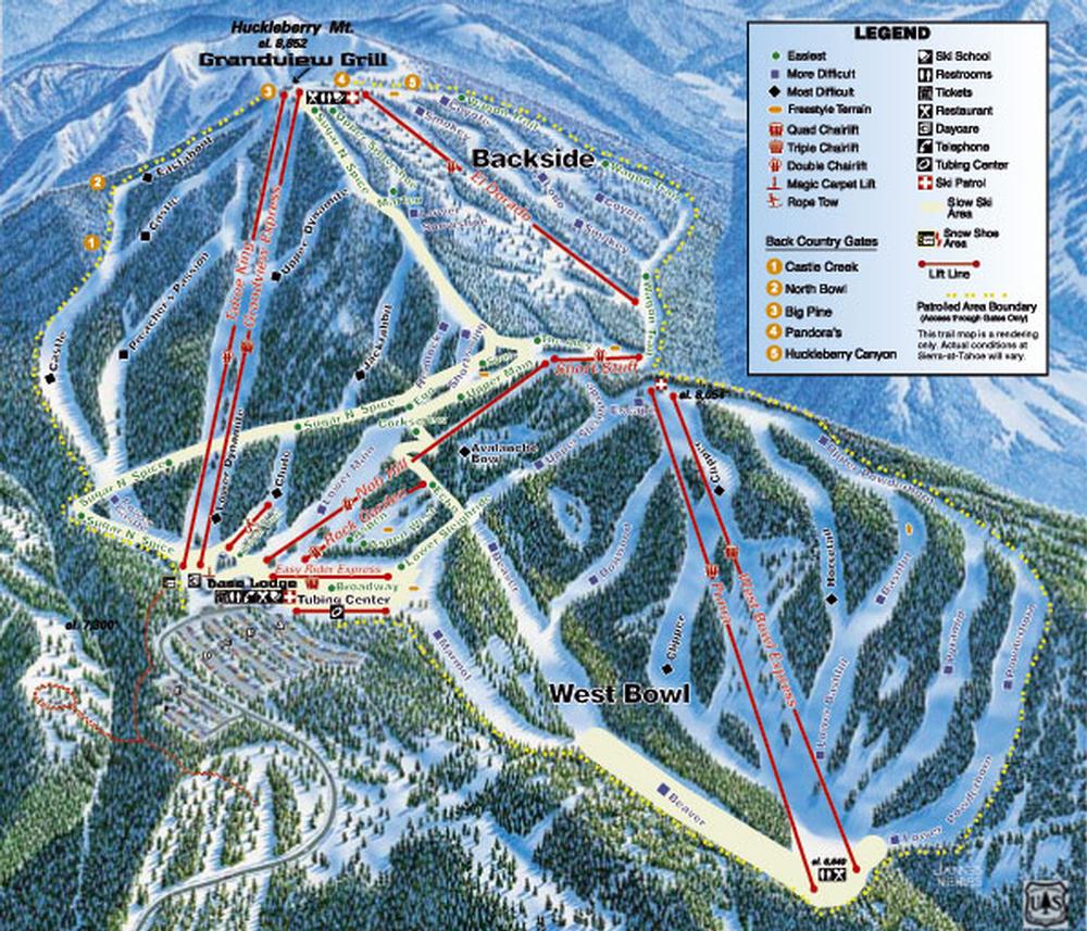 Sierra at Tahoe - SkiMap.org from skimap.org The openening times are provided by the ski resort sierra at tahoe and can vary based on. Therefore would like to stay at a good. Winds increasing (calm on fri morning. It is known for being a family oriented resort with some of lake tahoe's best beginner terrain. Big mountain with 2,000 acres of groomers, terrain parks, legendary tree skiing / riding, and huckleberry canyon! The resort also provides five backcountry access gates into huckleberry canyon. If you're up for a bit of challenge, ski sierra at tahoe may be to your liking. Route 50 and is contained within the eldorado national forest.